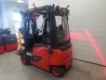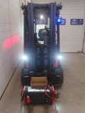 Single pedal system, Batt.-door 180° f.batt.-change, Piping for water refill 48V, Electrolyte indicator on tray, Charger PB 48V 120A 6kW Fronius, LED stripes status indicator, Temp. controlled charging, Forks 30 mm over ground/DT, Left door PVC/ right Steel, Internal Mirror, PVC seat, A4 Clipboard lighted, Working lamps position 1+2 and 8 LED, VertiLight position 5+6, USB electrical socket- 5V, ac: access control RFID, Data Transfer Online, dt: crash detection, an: usage analysis, Audible warning in reverse, Warning light in reverse, Flashing beacon beneath OHG, Fire extinguisher batt.hood, Red Warning Lines, BlueSpot position 3, BlueSpot™ position 7, Anti-spray mudflaps front, Variab. Preselection Mast Tilt, Tilt cylinder protection, Mudlaps rear, Load weight indicator+function