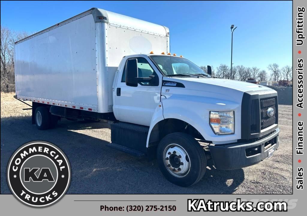 2017 Ford F650 - 20ft Box Truck. RWD. 6.8L V10 Triton. Gasoline. 230" WB. 6-Speed Automatic. Standard Cab. 2 Passenger. Oxford White Exterior. Steel Gray Cloth Interior. Tow Hooks. Side Steps. DRW. 26,000 GVWR.